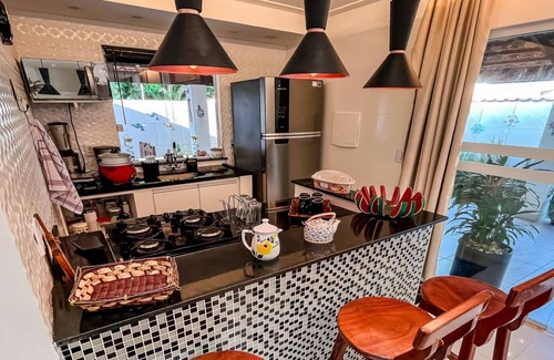 Esta casa de temporada foi pensada para acolher com conforto e conforto. São 3 quartos amplos, ideais para famílias ou grupos de amigos que buscam sossego sem abrir mão da praticidade. A varanda com área gourmet e a churrasqueira integrada ao jardim são um convite a refeições longas, celebrações leves e momentos que se tornam inesquecíveis.