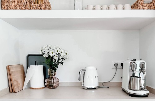 A fireplace and air conditioning are featured at this 5-bedroom, 3.5-bathroom rental. Bathroom amenities include a hair dryer, towels, and toilet paper. The kitchen is equipped with an oven, a stovetop, and a refrigerator, as well as a coffee maker, an electric kettle, and a microwave. And because there's a washer and dryer, you can go a bit lighter on your packing.