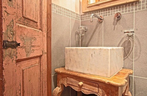 You will be able to enter the wellness room through an external access. The ceiling is sloped and is made of wood. It features an above-ground heated jacuzzi pool with hydromassage with five seats. The jacuzzi pool is open from the beginning of October until the end of April. The wellness room is shared with guests staying at another nearby apartment. Please note that use of the wellness facilities is not included in the rental fee and must be paid locally.