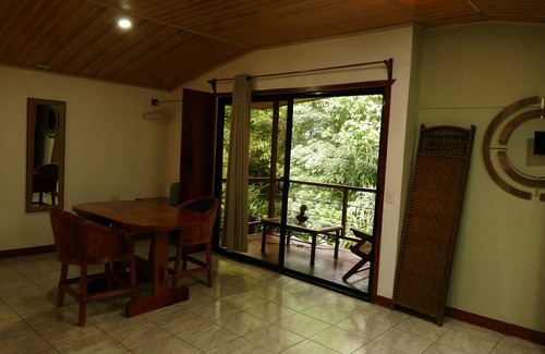 Our home offers all the comfort that you will need while visiting Monteverde. It offers a studio feel with open air bedroom style. Also offered is a wonderful deck / terraza to view the forest and stream below. The kitchen has the needed utensils and all the needed appliances to cook, a gas stove, fridge, microwave, coffee make. The tropical gardens are well kept and attract butterflies and hummingbirds, the nearby forest makes it for easy wildlife viewing and bird watching on the property.