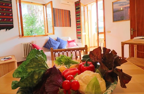 L'abitazione al primo piano offre 4 posti letto con camera da letto matrimoniale e divano letto due posti in soggiorno, angolo cottura completamente attrezzato, lavatrice e bagno con box doccia.