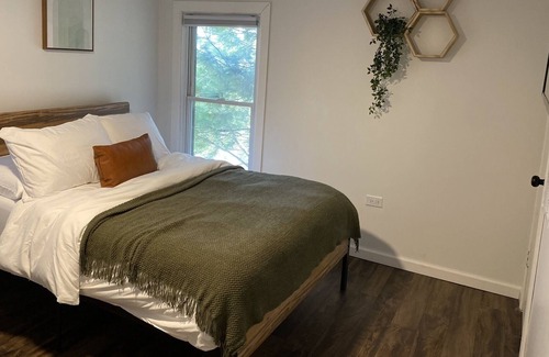 Welcome to our abode, located in Aurora, IL! right outside the downtown area, where there’s many amazing art galleries, trendy coffee spots and the casino for some night fun in the city. We’re also close to the Metra which travels throughout many close by cities leading to downtown Chicago. 2-bedroom 1-bathroom apartment located on the 2nd floor of the building. The apartment accommodates 7-guests with 2 full-size beds located in one room and the other with a queen and twin daybed. Every room is equipped with a Smart TV and comfortable bedding. The couch is equipped with pillows and blanket for late night movies and naps.