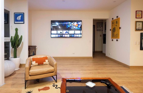 Welcome to this terrific 2-penthouse Miraflores retreat. This cool apartment features 1 queen bed and 2 twin bed, perfect for a nice getaway with friends or family. Enjoy the convenience of amenities like AC, WiFi, and a fitness room. With a washing machine and iron available, you can pack light and stay fresh throughout your stay. Make yourself at home in this cozy space and explore all that Miraflores has to offer. We'll be available to answer any questions while you stay at our place.
