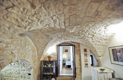 La Casina Petra is a splendid and romantic period two-room apartment with exposed stone star vaults, located in the nineteenth-century area of Ostuni, in an alley a few steps from the central square of the Municipality. Linen and towels provided. Free WI-FI in the summer months. Air conditioning hot / cold. Free and paid parking.