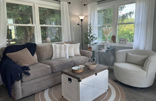Consider this mobile home your home away from home while you visit Clayton. This delightful property features 2 bedrooms, including 1 queen bed and 1 twin bed, perfect for a small group of guests. With amenities like heating, WiFi, AC, and a Beautiful beach vibe without the sand and water outlined with Cedars we named it the Cedar Cove you'll have everything you need for a fantastic stay. The bathroom also comes equipped with an outdoor barbecue pit and seating, beautiful country setting everything for your convenience. We hope you'll enjoy your stay at Cedar Cove
