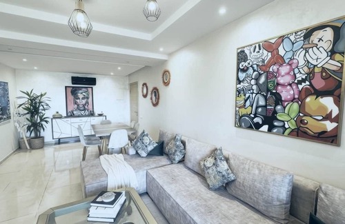 Discover the charm of Marrakesh at The Fabulous Flat, a serene getaway nestled in the heart of the city. This cozy retreat offers 2 bedrooms, 2 bathrooms, and a host of amenities to ensure a comfortable stay. Dive into relaxation with our pool, soak up the sun on the terrace, and enjoy the convenience of essentials like air conditioning, a washing machine, and a fully equipped kitchen. Perfect for those seeking a blend of adventure and tranquility in Morocco's enchanting atmosphere.