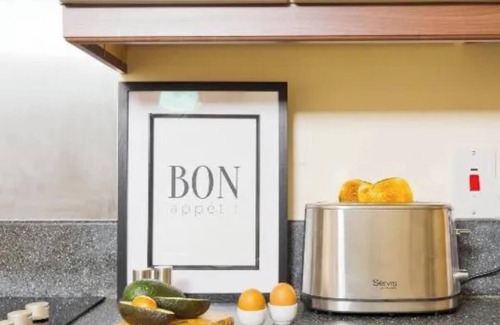 Designed with convenience and comfort in mind, this apartment includes a cozy seating area, perfect for unwinding after a busy day, and a fully equipped kitchen for home-cooked meals.