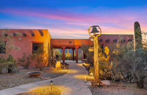 This beautiful desert home boasts a main home with an open kitchen living room with exposed beams and a kiva fireplace great for family gatherings. Spacious bedroom with comfy king bed. Master bath with walk-in shower. Across the open courtyard, there are two separate one-bedroom Casitas. DeGrazia casita has a king bed and full bath. The second casita has a full bed and a full bath- perfect for families or couples with complete privacy (not suitable for small children). Tile throughout the entire home. Washer and dryer located in the main house- with a fully stocked kitchen. Everything you will need to have an amazing stay. Ample parking on the curved driveway. There are cameras outside by the garage area. If you are looking to disconnect and enjoy the Arizona desert this is the home for you. Plan to arrive during the daylight hours as the home is remote and much easier to find prior to sunset. Do not cross the arroyo if it is raining.