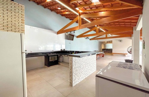 - A cozinha é equipada com todos os utensílios necessários para preparar suas refeições, incluindo freezer, fogão, forno, micro-ondas, balcão e mesa