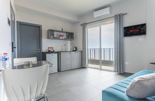 Step into your own slice of paradise with a private Jacuzzi and a bright, stylish studio overlooking the Mediterranean. Wake up to sea views, sip coffee at the breakfast nook, and unwind outdoors under the sky.
