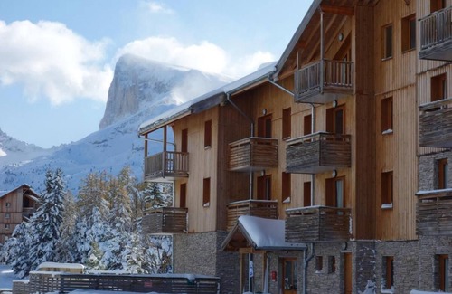 Le Hameau du Puy, Superdévoluy, Alps, France comprises of a set of semi individual split-level chalets (all in the same style) and apartments in collective chalets, they offer a welcome reception, a lounge. This 3-star luxury residence offers the best facilities, architecture, layout, design and location (close to major amenities and ski lifts) in the resort of Superdevoluy, Alps, France. At your disposal with free access: a relaxation area with indoor heated swimming pool and sauna. Surface area : about 42 m². Living room with bed-settee. Bedroom with double bed, 2 bunk beds. Bedroom with double bed. Kitchenette with special heater to prepare La Raclette, coffee machine, toaster, dishwasher, microwave, vitroceramics cooking rings, fridge. Bathroom with bath-tub. Separated WC. Terrace with table. vacuum cleaner. The beds in elevation are not suitable for children under 6 years.