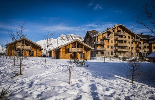 Le Hameau du Puy, Superdévoluy, Alps, France comprises of a set of semi individual split-level chalets (all in the same style) and apartments in collective chalets, they offer a welcome reception, a lounge. This 3-star luxury residence offers the best facilities, architecture, layout, design and location (close to major amenities and ski lifts) in the resort of Superdevoluy, Alps, France. At your disposal with free access: a relaxation area with indoor heated swimming pool and sauna. Surface area : about 56 m². Living room with bed-settee. Bedroom with double bed. 2 bedrooms with 2 single beds. Kitchenette with coffee machine, oven, toaster, dishwasher, microwave, vitroceramics cooking rings, fridge. Bathroom with bath-tub. Shower room with shower, WC. Separated WC. Terrace with table.