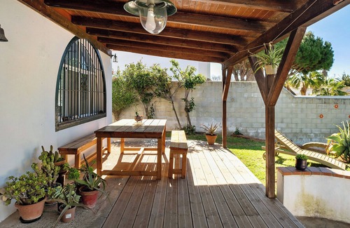 Located in Caños de Meca, the holiday home Casa Luna offers everything you need for a comfortable stay. The 70 m² property features a living room with a sofa bed for one person, a fully equipped kitchen, 2 bedrooms, and 1 bathroom, allowing up to 5 guests. Additional amenities include high-speed Wi-Fi (suitable for video calls) with a dedicated workspace, smart TV with streaming services, fan, and washing machine. This accommodation does not have air conditioning. The house offers a private outdoor area with a garden, open terrace, covered terrace, and barbecue.