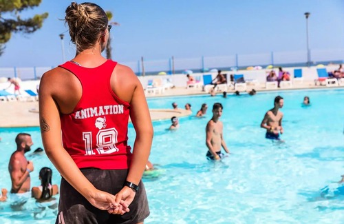 Residence: The Director's Word: A corner of paradise on the Costa Serena... Between beach, green park and hinterland mountains, you are free to do what you like!The Camping Marina d'Erba Rossa benefits from aquatic space which ensures fun and relaxation throughout the season: - 2 Outdoor heated pool- 1 Paddling pool- 4 Water slide- 1 Kamikaze slide- 1 Aqua-ludic playgroundYou can also find everything you need to relax: - Body care (surcharge)- Face care (surcharge)- Massages (surcharge)- Manicure (surcharge)- Sauna (surcharge)- Hot tub (extra charge)- Solarium - terraceYou will enjoy your holidays!Many activities are available on site: - Aquagym- Fitness / Stretching- Muscle awakening- Tennis- Beach volleyball- Basketball- Volleyball- Playground- Petanque- Ping-pong- Zumba- Mini-golf- Trampoline- Mini farmBadminton- Football- Handball- Aquabike- Video game room (extra charge)- Pool (surcharge)- Baby Foot (extra charge)And close to the site: - Fishing- Diving (17 km)- Kayak canoe (14 km)- Pedal boat- Accrobranch (1 km)- Riding stable (0.5 km)- Golf (60 km)- Boat trip- Jet skiYou won't get bored!Many animations You'll be able to enjoy your holidays. Daytime: - Sports competitions- Petanque contest- Animations / pool gamesIn the evening: - Show- Theme meals- Theme evening- Dance party- Karaoke.Get ready for a sporty and fun holiday!Children will have fun and enjoy the activities offered by the clubs on site: - Mini-club (5-7 years)- Children's Club (8-11 years)- Teen club (12-14 years)- Teen club (15-17 years old)Multiple services practices are proposed. To eat: - RestaurantBar- Snack.- Pizzeria- Ice cream- Crepery- Supermarket- Takeout dishes- Bread depotAvailable: - Wifi (1 free hotspot)- Wifi (extra charge)- Laundry (extra charge)- Dryer (extra charge)- Refrigerator rental (extra charge)- One authorized dog (excluding 1st and 2nd cat.) (extra charge)- Baby kit (highchair, bed, bathtub...)- Rent safe (surcharge)- Electric vehicle charging station (extra charge)- Bed linen rental (surcharge)- All types of barbecue are prohibited- Drainage areaOther information: Languages spoken at the reception: English
