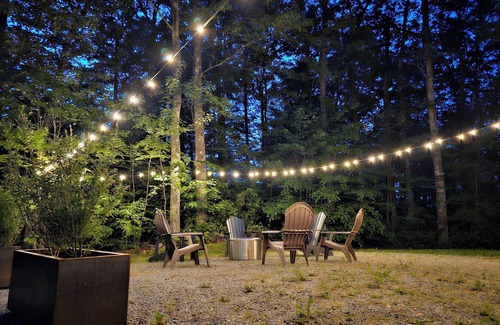 Escape to Azure Grizzly Chalet, nestled on 3 acres of tranquil forest along the picturesque Benton Pond in the heart of the Berkshires. This recently renovated property offers a blend of luxury and comfort, featuring high-end furnishings, unique artwork, and top-quality amenities.