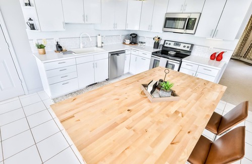 This house has 4 bedrooms and can easily sleep 10. We have a master suite with a king bed, 2 rooms with a queen bed and a room with 2 bunk beds. Plenty of space for you to relax after a long day of fun and adventure. It has a fully equipped chef’s kitchen and fast wifi for streaming or work.
