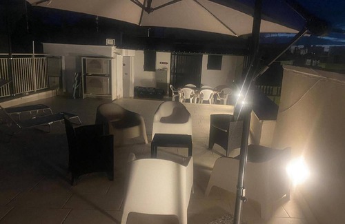 -Outdoors: The terrace is equipped with barbecue, water pipe, various plants, 4 outdoor chairs, 2 sun loungers with cover, sun umbrella and 6 chairs and outdoor table with cover of about 4m, exclusive use and with cameras to control access unregistered guests for trespassing and penalty up to 4 years