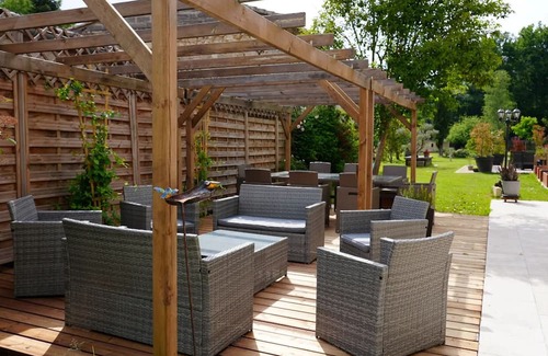 The large outdoor spaces, swimming pool, swimming spa (extra charge, ask for prices) and pool house with garden furniture, bar, plancha and beer pump make this the ideal place for groups or couples!