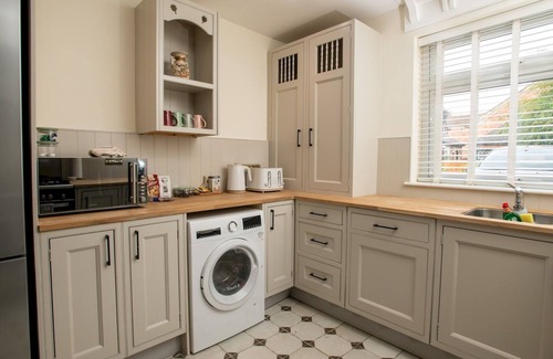 Our kitchen is well equipped with a washing machine and dishwasher and other large appliances such as oven and fridge-freezer. There is a range of smaller appliances too, such as; kettle, toaster and microwave. The apartment is based on the ground floor of a Victorian three storey, converted house and has the original kitchen which was previously used for the entire house so is very spacious.