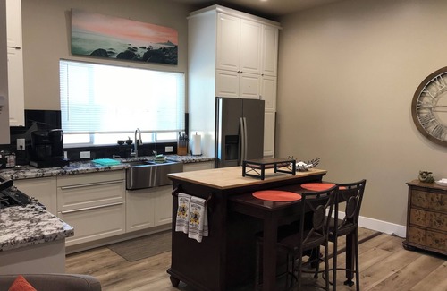 Escape to this tranquil 1-bdrm, detached casita with attached 1 car garage and EV charger, in Queen Creek. Make yourself at home in this excellent retreat featuring an open concept with 10 ft ceilings. In your bedroom is a comfy king bed and blackout shade. With a fully stocked kitchen, you can cook a gourmet meal. Starter supplies of laundry detergent , soaps and paper products provided. We hope you'll enjoy your stay. Located within 3 miles from eateries, grocery store, and entertainment. 7 miles to Mesa gateway airport and Arizona Athletic grounds. Your casita is separate from the main home on an acre of land. You won’t be disappointed! Only 30 day+ stays. Lease and background check required prior to arrival.