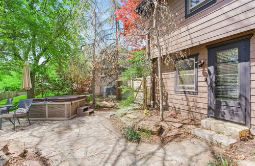 Newly renovated, unique and beautiful one bedroom, one bath apartment. The apartment has its own entrance and well-lit walkway. It includes a convenient kitchenette, a workout machine, and in unit washer and dryer. Also included is a comfortable futon for relaxing or watching tv at the end of the day. The apartment has a fenced in private, forest-like backyard with own patio and use of the hot tub. Situated in a quiet tree-lined suburb, it is convenient to Kansas City's main attractions, shopping and restaurants.
