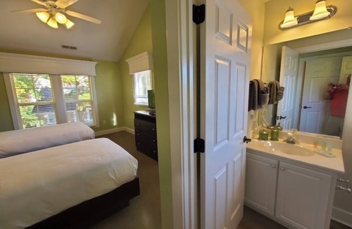 Located in Williamsburg near Bush Gardens, this condo is a dream. With a cozy bedroom and a stylish living room featuring 1 King Bed and 1 sofa bed, guests will feel right at home. The property boasts central air, washer/dryer, kitchenette, outdoor grill, WiFi, outdoor and indoor pool on site, sauna, and a fitness room for those looking to stay active. Enjoy a peaceful stay in this gorgeous space, perfect for unwinding after a day of exploring. Whether you're here for a weekend getaway or an extended stay, our place has everything you need. Enjoy all that Williamsburg has to offer when you stay at our place.