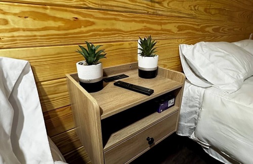 Make yourself at home in this 1-bedroom Timpson retreat. This enchanting hotel offers a cozy space with 2 queen beds, perfect for a peaceful getaway. Enjoy amenities like WiFi, AC, and a hair dryer for your convenience. We hope you'll enjoy your stay at our hotel.