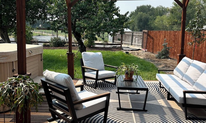 Charming 1920s Cottage Retreat – Modern Comfort, Vintage Soul is located in Canyon County. Charming 1920s Cottage Retreat – Modern Comfort, Vintage Soul provides accommodation, featuring Wellness Facilities, Fireplace/Heating, Barbecue/Outdoor Cooking, among other amenities. This Cottage features Wellness Facilities, Fireplace/Heating, Barbecue/Outdoor Cooking, to make your stay a comfortable one.