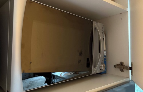 Fully Equipped Kitchen with modern appliances, including a coffee machine, microwave, oven, and large refrigerator—perfect for preparing meals.
