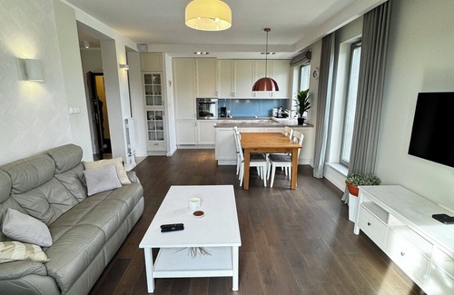 This Wrocław apartment boasts 2 inviting bedroom’s. 1 with a cozy queen bed. The 2nd bedroom has nice pull out couch bed . The soothing ambiance of this beautiful space is perfect for guests looking to unwind after a day of exploring. With amenities like heating, AC, and WiFi, you'll feel right at home. The bathroom features a refreshing shower and a hair dryer for your convenience. We're happy to assist with any questions while you stay at our apartment.