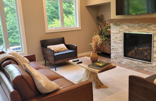 Unwind in Royalton at this fabulous apartment. This amazing property features 2 bedrooms with a king and queen bed, 2 bathrooms with a shower and bathtub, and essential amenities like WiFi, a washing machine, AC, heating, and an iron. Enjoy your time in Bethel/Royalton at our cozy apartment. Perfect for two couples to share with a high end (Quartz countertops) open concept kitchen and a gas fireplace in the living room with a 55 inch tv above. 10 minutes from I-89 Bethel exit. Close to Killington/Pico ski areas. Silver Lake in Barnard. And only 30 minutes to Woodstock.