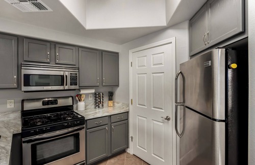 Your cozy getaway awaits in Phoenix at this delightful apartment. With 2 bedrooms featuring a king and queen bed, 2 bathrooms with showers and hair dryer, and amenities like central heating and AC, this pleasant space is perfect for guests looking for a comfortable stay. Enjoy time out on the private patio during the beautiful weather. A fully stocked kitchen is waiting for you to make some meals and memories together! This is a great place to call home away from home, we hope you enjoy your stay!