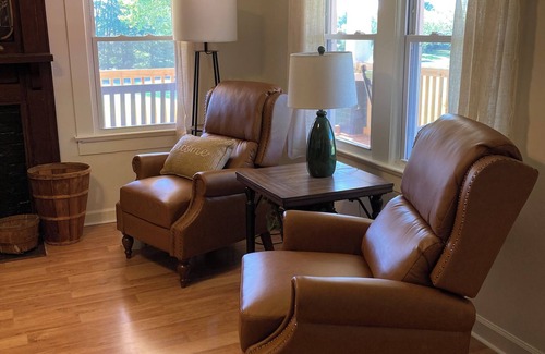 Updated 2 bedroom, 1 bath farmhouse nestled in large oaks surrounded by open pastures and timbered areas. Beautiful meandering creek runs through property at the bottom of the pastures. Ample room to hike and explore. Fire pit with Adirondack chairs provides a comfy place to relax, roast marshmallows, and enjoy the view. 15 min drive to Hanging Rock State Park.