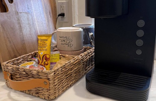 Stay in a well appointed (2) bedroom | (2) full bathroom home with romantic king suite with a spa bath, a queen guest room, chef’s kitchen, and cozy living spaces. Fast WiFi makes it perfect for work or leisure.