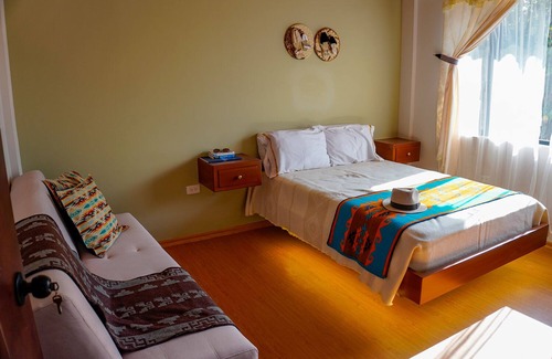 Your Cotacachi adventure begins at this 2-bedroom house. Nestled in a peaceful setting, this wonderful property features 2 full beds, heating, and WiFi. With 2 bathrooms equipped with showers, guests can relax and unwind in this tremendous space. Whether you're exploring the city or simply enjoying a quiet retreat, this cozy home is the perfect base for your stay. We look forward to hosting you at our place.