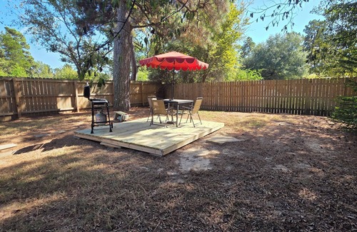 Make yourself at home in this 2-bedroom Tyler home. This cozy house features 2 queen beds, AC, iron, hair dryer, and heating. Enjoy the convenience of a hair dryer in the bathroom, and Keurig with stocked k-cups in the kitchen. 2 burner gas grill outback in a private backyard. Sitting area with shaded umbrella.