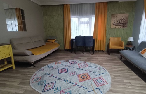This Marmaris house boasts 2 inviting bedrooms with 1 Double bed and 2 twin bed. The tranquil living room offers 2 sofa beds for extra comfort. Guests can unwind in the wonderful ambiance of this cool retreat, complete with amenities like WiFi, AC, and a washing machine. The bathroom features a shower and a hairdryer for added convenience. Enjoy your time in Marmaris at our cozy house. Location is in harbour center of town close to restorants and 5 min to beach