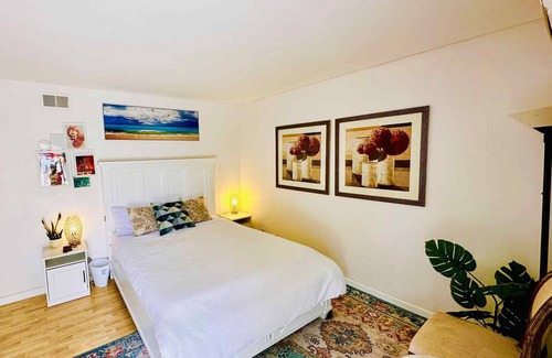 This Fountain Valley house boasts 2 inviting bedrooms with 1 king bed and 1 queen bed. The lovely decor and charming ambiance make guests feel right at home. With a bathroom equipped with a shower, bathtub, and hair dryer, comfort is key during your stay. It's easy to see why you'll be able to unwind at our place. Close to the freeway and 15 mins from Disneyland as well as popular attractions!