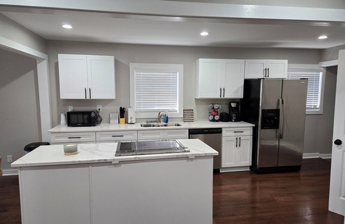 This 3-bedroom house in Birmingham is perfect for your escape to the city. With 2 queen beds, 1 twin bed, and 1 bunk bed, this delightful property offers a cozy and charming stay for guests. Enjoy the convenience of amenities like a washing machine, heating, WiFi, AC, and an iron. Book now and enjoy everything this house has to offer. It's located 5 minutes from Bham Cross Plex 20/59 and the heart of 5 point west.