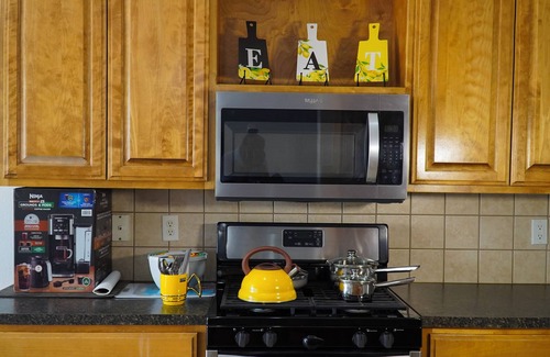 Your Jenks getaway awaits at this 3-bedroom house. Step into a gorgeous, tranquil space where guests can unwind and relax. With amenities like WiFi, AC, and a washing machine, your stay will be nothing short of awesome. Make your holiday one for the books with a stay at our place.