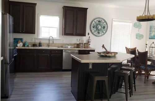 This spacious house in Big Pine Key offers 3 cozy bedrooms - 2 with king beds, 1 with 2 bunk beds with 2 full beds on bottom and with twin beds on top, House has 2 bathrooms. The living room provides an extra sleeping space with a comfy twin sofa bed. House has an open concept very large living room with a large kitchen and dining area, House is 1 mile from boat ramp, and 3 miles from Bahia Honda Beach, house is within walking distance to many restaurants and 2 bars. House is a very large corner home perfect for large families, boat trailers and all your water toys.