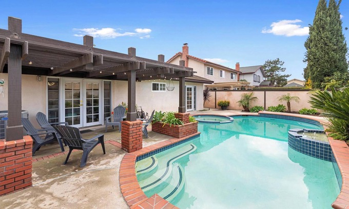 Make yourself at home in this cozy 3-bedroom retreat in Anaheim, just minutes from Disneyland! Perfect for families or groups, this welcoming getaway features a private pool, relaxing jacuzzi, and comfortable sleeping arrangements with 1 king bed, 1 queen bed, and 2 twin beds. With 2 full bathrooms, everyone can freshen up with ease after a fun-filled day. Enjoy modern conveniences like WiFi, air conditioning, a washing machine, and a dryer for a hassle-free stay.