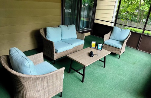 Located in Saint Charles, this beautiful house boasts 3 cozy bedrooms - 2 with king beds and 1 with a trundle bed. With 2 bathrooms featuring a shower and bathtub, guests can relax and unwind after a day of exploring. Our place is equipped for both long or short stays to make your holiday one to remember. Our place is kid and pet friendly! We have a room full of toys for your little ones and a fully fenced yard for your furry friends!