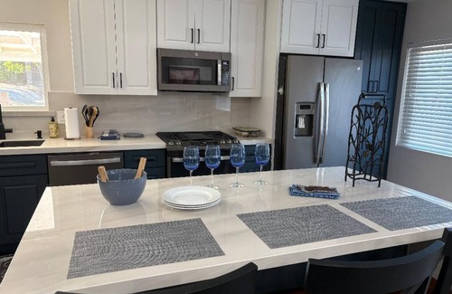 Get ready to relax in this 3-bedroom house in Norco. With a king bed, queen bed, and full bed, guests will have plenty of space to unwind. This peaceful retreat offers a jetted bathtub for a nice, relaxing soak after a day of exploring. Kickback, relax, and enjoy everything Norco and our house has to offer.