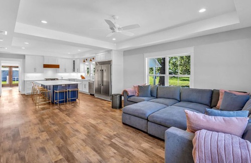 Your cozy getaway awaits just outside of Mineola at this amazing house. Located in the charming community of Hainesville, and boasting 3 bedrooms including 1 king bed and 2 queen beds, along with 2 bathrooms equipped with a shower and hair dryer, this adorable property offers a comfortable stay. Enjoy the additional living room space with a sofa bed for extra guests. You're sure to make fantastic memories with a stay at our place. This quaint and cozy farmhouse was completely rebuilt in 2023-2024. It is located 15 miles from Lake Fork, 30 miles from Tyler, 15 miles from downtown Mineola, and 10 miles from downtown Quitman. For those wishing to take your bass boat to Lake Fork, the ample parking allows you to easily park your boat trailer, and outdoor outlets allow for charging of trolling motors. Welcome to the Farmhouse!