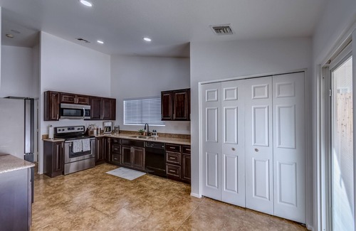 This memorable house is the perfect home base for your trip to Tucson. With 4 bedrooms, including 1 king bed and 3 queen beds, this welcoming property can comfortably accommodate your group of guests. The 3 bathrooms are equipped with amenities such as a bathtub, hair dryer, and shower. You'll find everything you need for a fantastic stay, from the hair dryer and iron to the WiFi and AC. Whether you're exploring the city or relaxing at the beautiful property, we'll be available to answer any questions while you stay at our place.