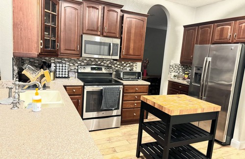 Your cozy getaway awaits in Lutz at this fabulous house. With 4 enchanting queen /full bedrooms and 2 tranquil bathrooms featuring a bidet, this property offers a peaceful retreat. The living room with a futon provides additional space for relaxation. Enjoy amenities like heating, AC, WiFi, and more during your stay. We look forward to hosting you at our place.