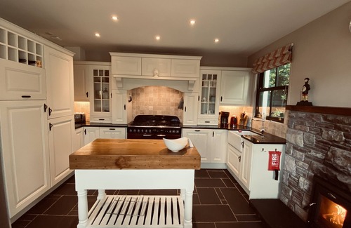 The rural-style kitchen offers all modern amenities, such as an AGA gas-electric oven, dishwasher, fridge and freezer, microwave, electric kettle, toaster and coffee maker.