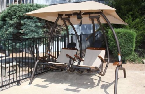 • Unwinding while swaying gently on the rustic wooden swings.