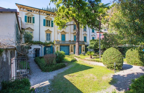 An 18th century VENETIAN STILE VILLA on the west side of Lake Garda, facing the small harbour of Toscolano Maderno. The apartment is on the third floor of the main building, serviced by an elevator. It has 1 double bedroom, 1 triple, 1 bathroom with shower, separate kitchen, living room. It has a heating system and air conditioning (free of charge). Soulér 1 has free access to the house historical garden, surrounded on three sides by the lake, where tables, chairs and sun beds are available. A nice BBQ is also available in the garden. The garden has to be shared with other guests of different apartments in the same house.